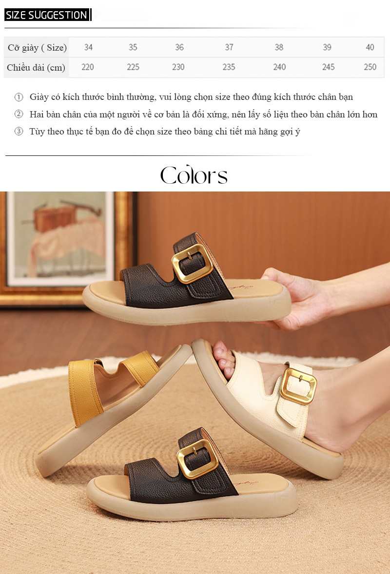 Với chất liệu da cao cấp, siêu êm mềm, thiết kế tinh tế tạo điểm nhấn cho đôi giày Sandal, đế chống trơn trượt, khi lên chân bao đẹp cho chị em